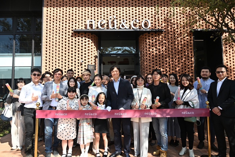 ▲neü & co 開幕剪綵儀式,磐鈺營建機構團隊、生活美學文化藝術基金會夥伴與親友齊聚,共同見證建築理念走入生活場域的重要時刻。(圖/磐鈺營建機構提供)